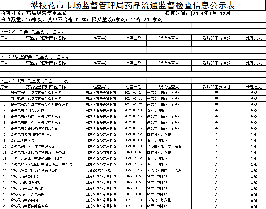 攀枝花市市场监督管理局药品流通监督检查信息公示(2024年度)